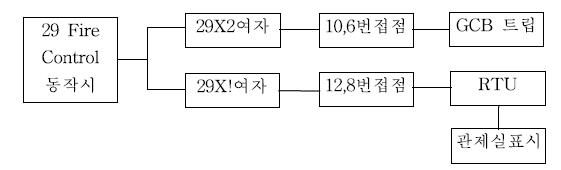 화재발생시 변성계통 차단기를 트립시켜 사고확대 및 기기보호 를 하기 위하여 29계전기를 사용며 연동순서는 다음과 같다.