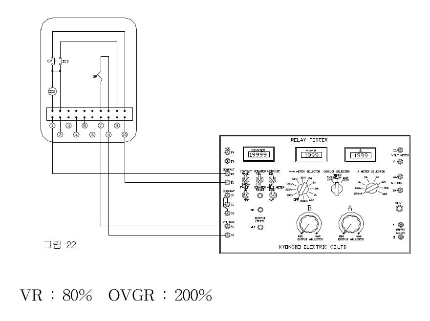 탭의 전압에서 원판이 회전하기 시작하여 접점이 폐로 되었 을때의 전압을 측정한다. 정정값의 ±10%